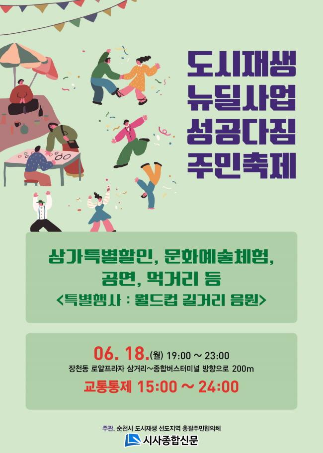 À̹ø Çà»ç´Â ¼øÃµ½Ã µµ½ÃÀç»ý ¼±µµÁö¿ª ÃѰýÁÖ¹ÎÇùÀÇü°¡ ÁÖ°üÇÏ¸ç ¿øµµ½É Áֹΰú »óÀÎ, û³â°ú ¿¹¼ú°¡ µîÀÌ Âü¿©ÇÏ¿© ÆäÀ̽ºÆäÀÎÆÃ, ¸Ô°Å¸®ºÎ½º ¿î¿µµî ´Ù¾çÇÑ º¼°Å¸®¿Í Áñ±æ°Å¸®°¡ ÆîÃÄÁø´Ù. ¶ÇÇÑ ÁÖº¯»ó°¡ Ưº°ÇÒÀÎ Çà»ç(10~20%)µµ ÇÔ²² ÁøÇàµÈ´Ù.