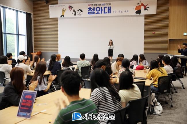 û³â Çà»ç ¡®Ã»¿Í´ë¡¯¸¦ ±âȹÇÑ ¹®È±âȹ ÆÀ ¶ß°Å¿î »ó¡ÀÇ ¹ÚÇöÁ¤ ÇлýÀº ¡°Ã»Ãá¿¡ ÀÇÇÑ Ã»ÃáÀ» À§ÇÑ Ã»³â Çà»çÀÎ ¡®Ã»¿Í´ë¡¯´Â ¿ì¸®µéÀÌ ÀÚ½ÅÀÇ À̾߱⸦ ÇÒ ¼ö ÀÖµµ·Ï, ûÃáµéÀÌ Ã»Ãá¿¡°Ô °í¹ÎÀ» Åͳõ°í, ¼·ÎÀÇ ¹Ì·¡¸¦ ¼ÒÅëÇÒ ¼ö ÀÖ´Â ÀÚ¸®´Ù¡±¸ç ¡°Ã»ÃáµéÀÌ Çйú?¼ºÀû µî ¾î´À °Í¿¡µµ Á¦¾à¹ÞÁö ¾Ê°í Å« ²ÞÀ» °®°í ¹Ì·¡¸¦ ÇâÇØ ÈûÂ÷°Ô µµÀüÇÏ±æ ¹Ù¶õ´Ù¡±°í ¼Ò°¨À» ³²°å´Ù.