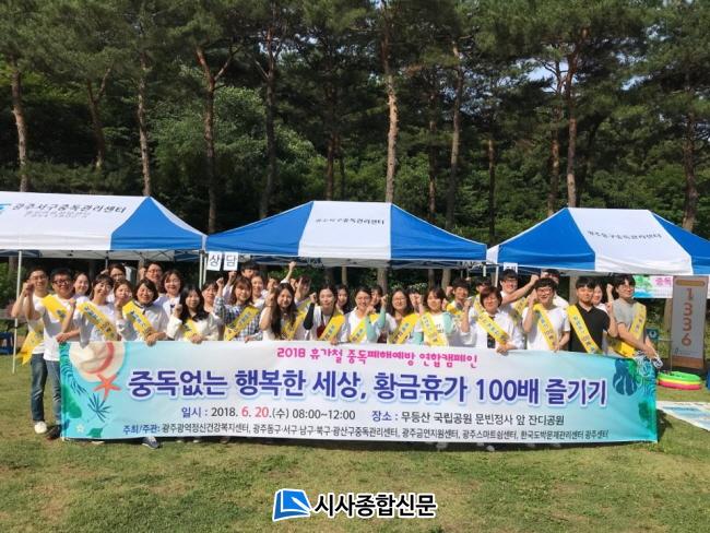 Ä·ÆäÀο¡´Â ±¤ÁÖ½Ã, º¸°Ç¼Ò, ±¤¿ªÁ¤½Åº¹Áö¼¾ÅÍ, Áßµ¶°ü¸®¼¾ÅÍ, ±Ý¿¬Áö¿ø¼¾ÅÍ, ½º¸¶Æ®½°¼¾ÅÍ, µµ¹Ú¹®Á¦°ü¸®¼¾ÅÍ µî °ü°èÀÚ 50¿© ¸íÀÌ Âü¿©ÇÑ °¡¿îµ¥ ¡ãÀ½ÁÖ°¡»óüÇè ¡ãÁßµ¶¡Û¡¿ÄûÁî ¡ãµµ¹ÚüÇè ¡ã½º¸¶Æ®Ã¼Çè ¡ã¾ËÄÚ¿Ã, ÀÎÅͳÝ, µµ¹Ú, ´ÏÄÚÆ¾, ¸¶¾à »ó´ã, È«º¸ µî ´Ù¾çÇÑ ÇÁ·Î±×·¥ÀÌ ÁøÇàµÆ´Ù.