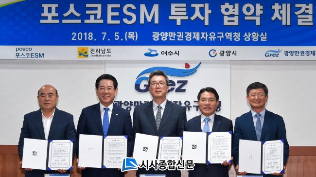 ¿©¼ö½Ã¿¡ µû¸£¸é 5ÀÏ ¿ÀÀü ±¤¾ç°æÁ¦ÀÚÀ¯±¸¿ªÃ»¿¡¼ ¿©¼ö½Ã¿Í Àü¶ó³²µµ, ±¤¾ç½Ã, ±¤¾ç¸¸±Ç°æÁ¦ÀÚÀ¯±¸¿ªÃ», ¢ßÆ÷½ºÄÚ ESMÀÌ À²ÃÌ»ê´Ü¿¡ 5700¾ï ¿øÀ» ÅõÀÚÇÏ´Â Çù¾àÀ» ü°áÇß´Ù.