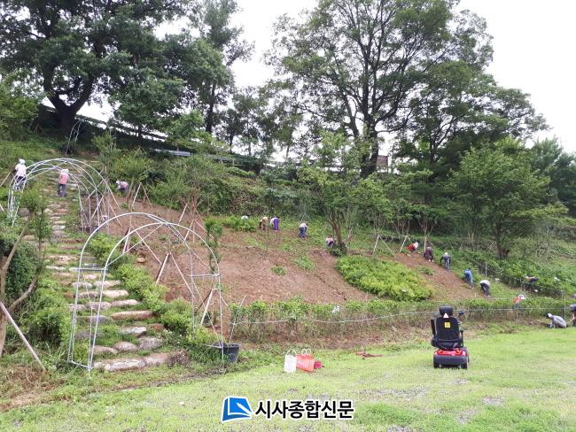 ¶ÇÇÑ, Áö³ 10ÀÏ º»°ÝÀûÀÎ ¿©¸§Çà¶ôöÀ» ¸ÂÀÌÇÏ¿© ¸¶À»ÁֹΠ80¿© ¸íÀÌ Âü¿©ÇØ ¸¶À» ½£¿¡ ½ÄÀçµÈ ÀÌÆË³ª¹«, »êµþ³ª¹« µî ±³¸ñ·ù 300ÁÖ¿Í »ê¼ö±¹, ²É´ó° µî °ü¸ñ·ù 1,870ÁÖ°¡ Àß ÀÚ¶ö ¼ö ÀÖµµ·Ï ÀâÃÊ¿Í Àâ¸ñÀ» Á¦°ÅÇϰí ȯ°æÀ» Á¤ºñÇÏ¿´´Ù.