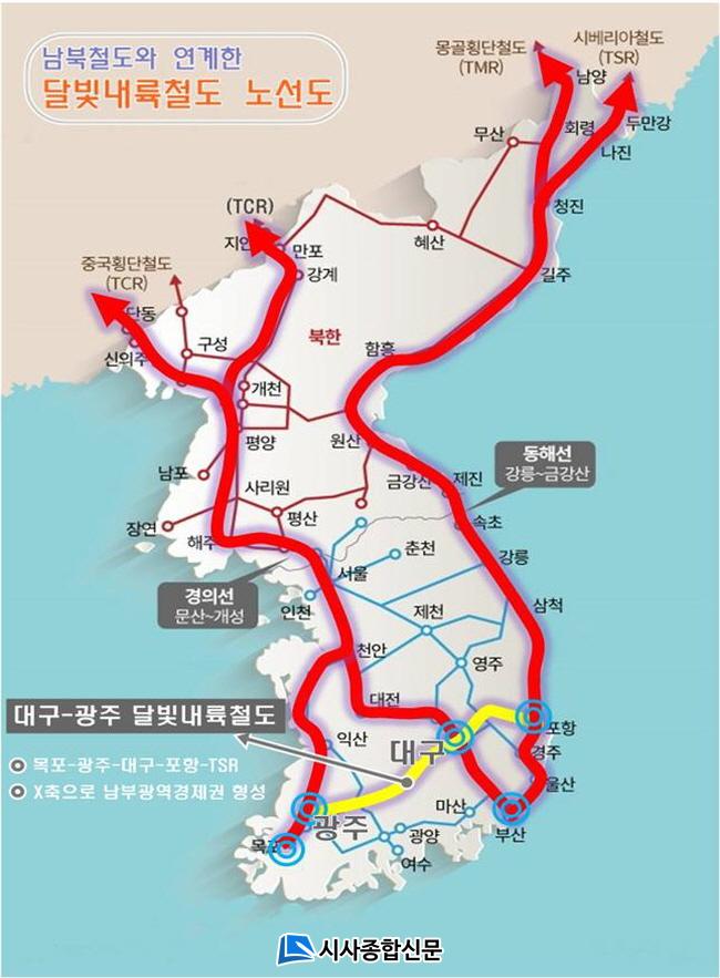 ÇÑÆí, ±¤Áֽà °ü°èÀÚ´Â ¡°±¤ÁÖ~´ë±¸ ´Þºû³»·úöµµ °Ç¼³Àº 1300¸¸¸í ÀÌ»óÀÇ ÀÎÀû¡¤¹°Àû±³·ù¸¦ ¹ÙÅÁÀ¸·Î ³²ºÎ°æÁ¦±ÇÀ» ±¸ÃàÇØ µ¿¼ÈÇÕ°ú Áö¿ª±ÕÇü¹ßÀü¿¡ À̹ÙÁöÇÒ °ÍÀÌ´Ù¡±¸ç ¡°³²ºÏöµµ¿Íµµ ¿¬°èµÅ À¯¶ó½Ã¾Æ·Î À̾îÁö´Â ±¹Á¦Ã¶µµ·Î ¹ßÀü °¡´ÉÇØ ±¹°¡ Àçµµ¾àÀÇ °è±â°¡ µÉ °Í¡±À̶ó°í ¸»Çß´Ù.