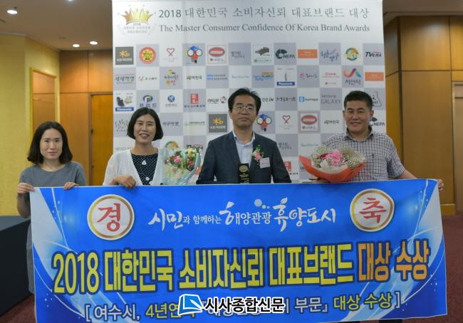 ¿©¼ö½Ã´Â 19ÀÏ ¿ÀÀü ±×·£µåÈúư¼¿ï¿¡¼ ¿¸° 2018 ´ëÇѹα¹ ¼ÒºñÀÚ½Å·Ú ´ëÇ¥ºê·£µå ´ë»ó ½Ã»ó½Ä¿¡¼ ÇØ¾ç°ü±¤µµ½Ã ºÎ¹® ´ë»óÀ» ¼ö»óÇß´Ù°í À̳¯ ¹àÇû´Ù.