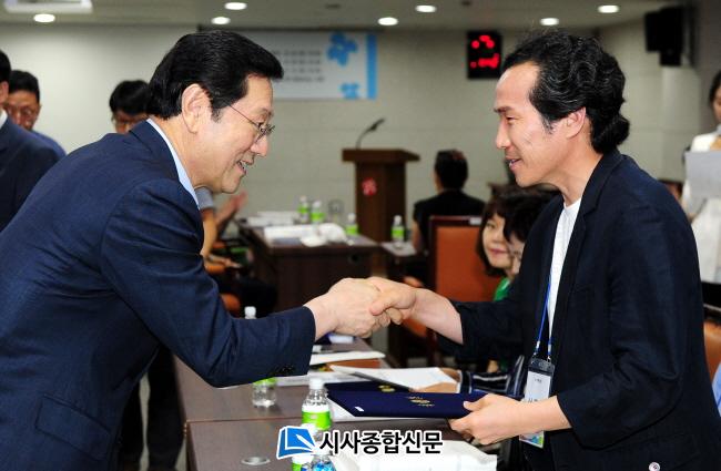 À̳¯ 50¸í¿¡°Ô ÀÏÀÏÀÌ À§ÃËÀåÀ» ¼ö¿©ÇÑ À̿뼷 ½ÃÀåÀº ¡°4³â ÈÄ, ´Þ¶óÁú ±¤ÁÖ¸¦ ±â´ëÇÏ¸ç ±¤ÁÖ¸¦ ´ëÇѹα¹ ¹Ì·¡·Î! Á߽ɵµ½Ã·Î ¿ì¶Ò ¼¼¿ì±â À§ÇØ ¾à¼ÓÀ» ÁöŰ´Â ½ÃÀåÀÌ µÇ°í ½Í´Ù¡±¸é¼ ¡°½Ã¹ÎÀÇ ¶æ°ú ´«³ôÀ̸¦ ¹Ý¿µÇÑ Á¤Ã¥À» °áÁ¤ÇØÁÖ½Ã±æ ºÎŹµå¸°´Ù¡±°í ´çºÎÇß´Ù. À̳¯ ȸÀÇ¿¡¼´Â Çѱ¹¸Å´ÏÆä½ºÅä½Çõº»ºÎÀÇ ¸Å´ÏÆä½ºÅä °ü·Ã ±³À°°ú ½Ã¹Î¹è½É¿ø´Ü ºÐÀÓ ±¸¼º µîÀÇ ¼ø¼·Î À̾îÁ³´Ù.