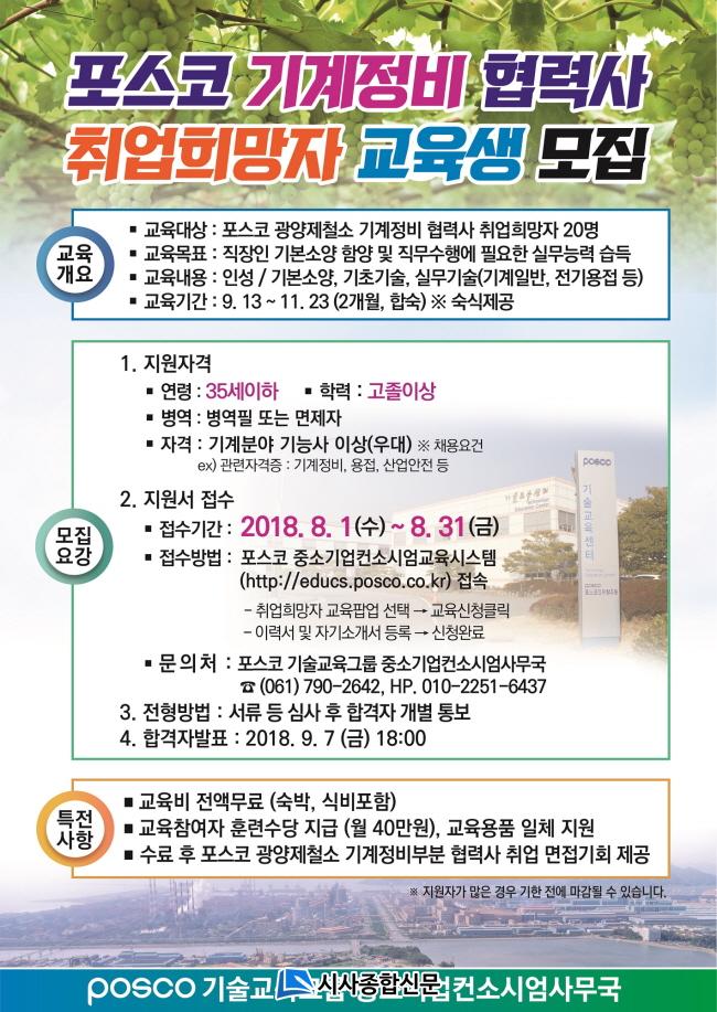 ÇÑÆí, ÀÚ¼¼ÇÑ ³»¿ëÀº Æ÷½ºÄÚ Áß¼Ò±â¾÷ ÄÁ¼Ò½Ã¾ö»ç¹«±¹(061-790-2642)À¸·Î ¹®ÀÇÇÏ¸é µÇ¸ç, Æ÷½ºÄÚ ±¤¾çÁ¦Ã¶¼ÒÀÇ Çù·Â»ç Ãë¾÷Èñ¸ÁÀÚ ±³À°Àº 2017³â »ó¹Ý±âºÎÅÍ ½ÃÀÛÇØ ¿ÃÇØ ÃʱîÁö 78¸íÀÌ ±³À°À» À̼öÇϰí 66¸íÀÌ Çù·Â»ç¿¡ Ãë¾÷ÇÏ´Â ¼º°ú¸¦ ¿Ã·È´Ù.
