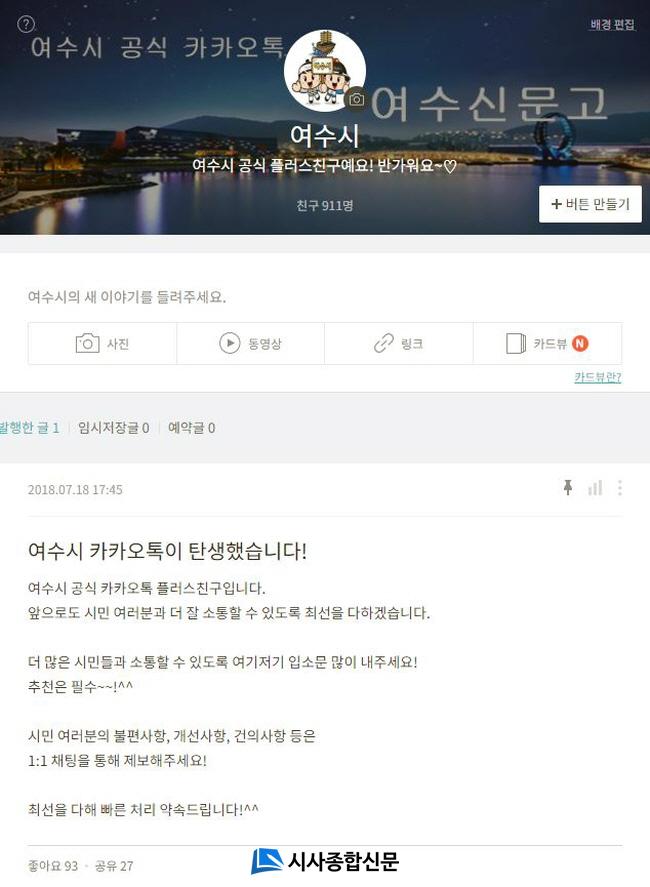 ¿©¼ö½Å¹®°í ÀÌ¿ëÀ» ¿øÇÏ´Â ½Ã¹ÎÀº īī¿ÀÅå ¾Û¿¡¼ ¡®¿©¼ö½Ã¡¯¸¦ °Ë»öÇØ Ç÷¯½ºÄ£±¸ ¿©¼ö½Ã¸¦ Ŭ¸¯ÇÑ ÈÄ 1:1 ´ëÈ ¿äûÀ» ÇÏ¸é µÈ´Ù.