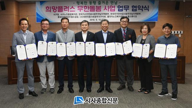 10ÀÏ ¼±¸Ã»°ú Çѱ¹°¡½º¾ÈÀü°ø»ç±¤ÁÖÀü³²Áö¿ªº»ºÎ¸¦ ºñ·ÔÇÑ 8°³ ±â°ü ´ëÇ¥µéÀÌ ¸ð¿© Çù¾à½ÄÀ» °³ÃÖÇßÀ¸¸ç, Áö¿ª»çȸ ³×Æ®¿öÅ©¸¦ µ·µ¶È÷ ÇÏ¿© µ¹º½¼¼´ë¸¦ Áö¿øÇÏ´Â ¸ÂÃãÇü»ç¾÷À» ½Ç½ÃÇϱâ·Î ¾à¼ÓÇß´Ù. ¾ÕÀ¸·Îµµ ¹«Çѵ¹º½»ç¾÷ÆÀÀº Ȧ¸ö³ëÀÎ, Àå¾ÖÀÎ µî µ¹º½ÀÌ ÇÊ¿äÇÑ º¹Áö»ç°¢Áö´ë ÁֹεéÀ» Áö¼ÓÀûÀ¸·Î ¹ß±¼ÇÏ¿© Èñ¸ÁÀ» Áö¿øÇÏ¸ç ´ë»óÀÚ¸¦ È®´ëÇØ ³ª°¥ °èȹÀÌ´Ù.