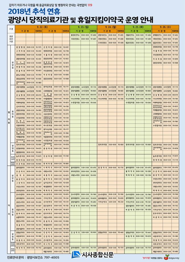 | ±¤¾ç½Ã, Ãß¼® ¿¬ÈÞ ¾È½ÉÁø·á´ëÃ¥ »óȲ½Ç °¡µ¿ ´çÁ÷ÀÇ·á±â°ü°ú ÈÞÀÏÁöÅ´ÀÌ ¾à±¹ µî 116°³¼Ò ¿î¿µ