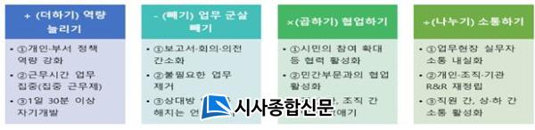 ±¤Áֽô ¾÷¹« ±º»ìÀ» »© ½Ã¹ÎÆíÀÍ ÁõÁøÀ» À§ÇÑ ¿ª·®Àº ´Ã¸®°í, ½Ã¹Î°úÀÇ ¼ÒÅë°ú ÇùÄ¡¸¦ °ÈÇØ ½ÃÁ¤¿î¿µÀÇ ½Ã³ÊÁö¸¦ ±Ø´ëÈÇØ ³ª°¥ °èȹÀÌ´Ù. À̸¦ À§ÇØ Á¤Ã¥À̳ª º¸Á¶»ç¾÷ µî¿¡ ´ëÇÑ ÀϸôÁ¦(3³â)¸¦ °ÈÇϰí ÇàÁ¤¾÷¹«¸¦ °£¼ÒÈÇÑ Ç¥ÁؾÈÀ» ¸¶·ÃÇÏ´Â µî ¾÷¹«Çõ½Å 4Ä¢ ¿¬»êÀ» ÅëÇØ ÀÌÇØ¿Í ¹è·ÁÀÇ ÇàÁ¤ ¹®È¸¦ Á¶¼ºÇØ ³ª°¡°Ô µÈ´Ù.