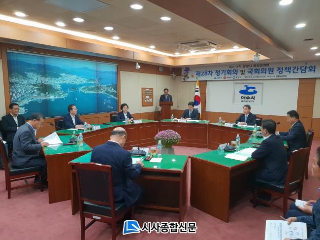 ¼øÃµ½Ã¿¡ µû¸£¸é 27ÀÏ ¿ÀÀü ¿©¼ö½Ãû »óȲ½Ç¿¡¼ ±Ç¿ÀºÀ ¿©¼ö½ÃÀå, Çã¼® ¼øÃµ½ÃÀå, Á¤Çöº¹ ±¤¾ç½ÃÀå, ÁÖ½Â¿ë ±¹È¸ºÎÀÇÀåÀ» ºñ·ÔÇØ ÀÌ¿ëÁÖ, ÃÖµµÀÚ, ÀÌÁ¤Çö, Á¤ÀÎÈ µî Áö¿ª±¹È¸ÀÇ¿øÀÌ Âü¼®ÇÑ °¡¿îµ¥ Á¦28Â÷ ÇùÀÇȸ Á¤±âȸÀǰ¡ ¿·È´Ù.