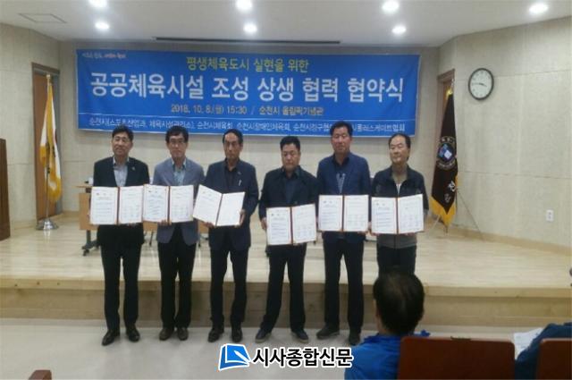 À̳¯ Çù¾à½ÄÀº ¸ðµç ½Ã¹ÎÀÌ ¾ðÁ¦ ¾îµð¼³ª °Ç°ÇÏ°Ô Ã¼À°È°µ¿À» ÇÒ ¼ö ÀÖ´Â Æò»ýüÀ°µµ½Ã ½ÇÇöÀ» À§ÇØ °ø°øÃ¼À°½Ã¼³ Á¶¼ºÀÌ º¸´Ù ¹ßÀüÀûÀ̰í È¿À²ÀûÀ¸·Î Á¶¼ºµÇµµ·Ï »óÈ£ Çù·ÂÀ» ´ÙÁüÇÏ´Â ÀÚ¸®·Î ¼øÃµ½Ã ½ºÆ÷Ã÷»ê¾÷°úÀå, üÀ°½Ã¼³°ü¸®¼ÒÀå, ¼øÃµ½ÃüÀ°È¸ »óÀÓºÎȸÀå, ¼øÃµ½ÃÀå¾ÖÀÎüÀ°È¸ »óÀÓºÎȸÀåÀ» ºñ·ÔÇÏ¿© ¼øÃµ½ÃÁ¤±¸ÇùȸÀå, ¼øÃµ½Ã·Ñ·¯½ºÄÉÀÌÆ®ÇùȸÀå µî °ü°èÀÚ 50¿©¸íÀÌ Âü¼®ÇÑ °¡¿îµ¥ Çù¾à¼¿¡ ¼¸íÇß´Ù.