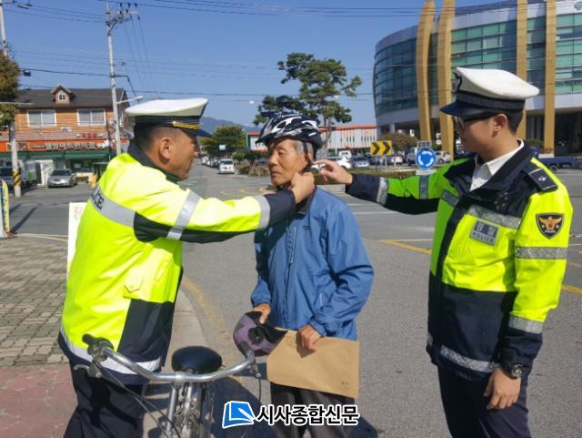 [°î¼º/½Ã»çÁ¾ÇսŹ®]Á¶³²Àç ±âÀÚ = °î¼º°æÂû¼(¼Àå ¾çµ¿Àç)´Â 28ÀÏ ½ÃÇàµÈ °³Á¤ µµ·Î±³Åë¹ý È«º¸¸¦ À§ÇØ 5ÀϽÃÀå ³» ÁֹεéÀ» »ó´ë·Î ÀÚÀü°Å ¾ÈÀü¸ð Âø¿ë È«º¸È°µ¿À» ½Ç½ÃÇß´Ù.