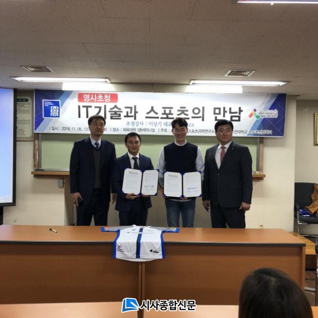 QMIT ÀÌ»ó±â ´ëÇ¥´Â À̳¯¡®½ºÆ÷Ã÷¿Í IT¡¯¶ó´Â ÁÖÁ¦·Î Ưº° °¿¬À» ¸¶Ä¡°í Ä¡·¯Áø Çù¾à½Ä¿¡¼ ¡°±¤ÁÖ¡¤Àü³²¿¡¼ À¯ÀÏÇÑ ½ºÆ÷Ã÷»ê¾÷Çаú¿Í MOU¸¦ ü°áÇÏ°Ô µÇ¾î ±â»Ú´Ù¸ç, ÇâÈÄ ÀηÂä¿ë, ÀÎÅÏ½Ê ÇÁ·Î±×·¥, ÇлýµéÀÇ Ã¢¾÷Áö¿ø µî¿¡¼ Áö¿øÀ» ¾Æ³¢Áö ¾Ê°Ú´Ù¡±°í ¹àÇû´Ù.