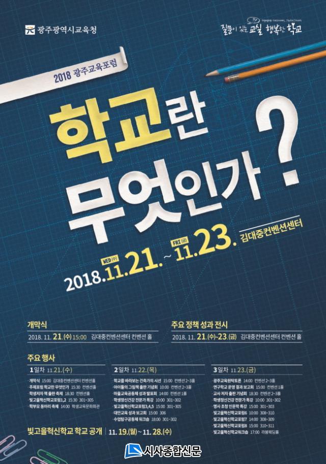 À̹ø Çà»ç´Â 21ÀÏ ¿ÀÈÄ 3½Ã °³¸·½Ä°ú ÁÖÁ¦Æ÷·³ ¡®Çб³¶õ ¹«¾ùÀΰ¡?¡¯·Î ½ÃÀÛÇÑ´Ù. ÀÌÈÄ ´Ù¾çÇÑ Æ÷·³À» ºñ·ÔÇØ ±³À°Á¤Ã¥ Àü½Ã, Çлý ÀúÀÚ Ã¥ Àü½Ã, Çкθ𠵿¾Æ¸® ÃàÁ¦, Çб³ °ÇÃà°ú °ø°£ Ȱ¿ë ³íÀÇ, Çлý Á¤½Å°Ç° Ư°, ´ë¾È±³À° ¼º°ú º¸°íȸ, ±¤ÁÖ±³À°¿øÅ¹Åä·Ðȸ, ¸í»çÃÊû Àι®ÇРƯ° µîÀÌ ÀÌ·ïÁú ¿¹Á¤ÀÌ´Ù.