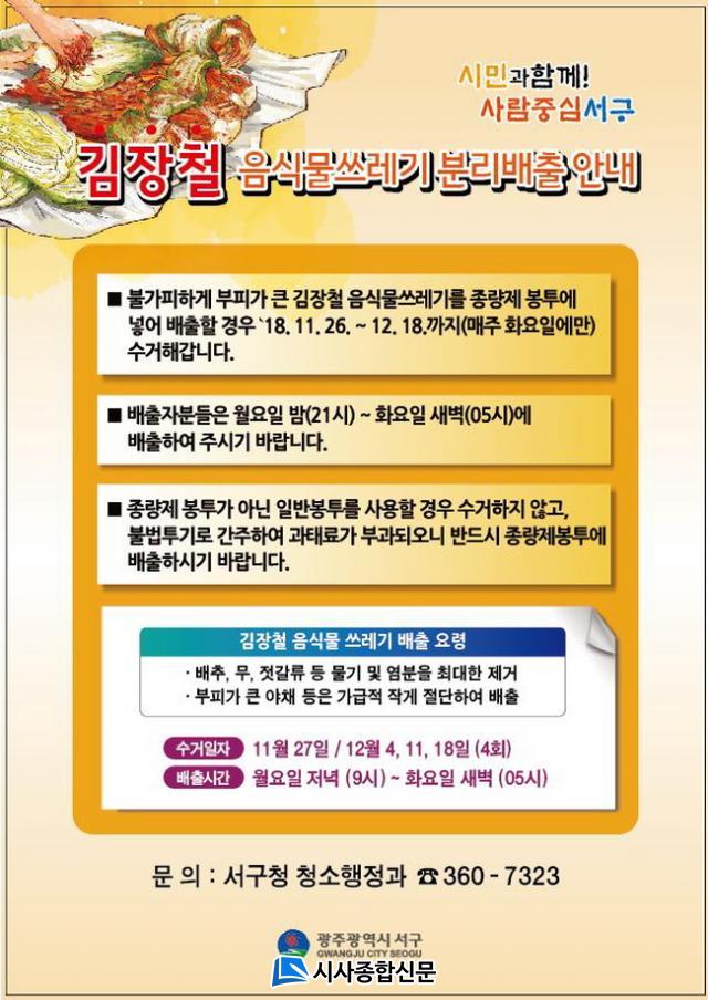 À̸¦ ´ëºñÇÏ¿© ¼±¸´Â 19ÀϺÎÅÍ 25ÀϱîÁö ±èÀåö À½½Ä¹°¾²·¹±â ¹èÃâ¹æ¹ýÀ» ¾È³»․È«º¸Çϰí, ¾²·¹±â ¼ö°ÅÁö¿¬¿¡ µû¸¥ ºÒÆí»çÇ×À» ÃÖ¼ÒÈÇϱâ À§ÇÑ ±âµ¿Ã³¸®¹Ý ±¸¼ºµî »çÀü Áغñ±â°£À» °®´Â´Ù.