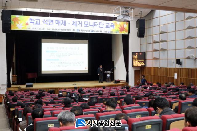 Áö³ 23ÀÏ¿£ ±¤ÁÖ±¤¿ª½Ã±³À°Á¤º¸¿ø¿¡¼ À̹ø ¹æÇÐ Áß ¼®¸é±³Ã¼°ø»ç Çб³ÀÇ ±³Àå.±³°¨.Çкθð.¹Î°£´Üü¡¤°ø»ç°ü°èÀÚ µî 200¿©¸íÀ» ´ë»óÀ¸·Î ¼®¸é ¸ð´ÏÅÍ´Ü È°µ¿ ¿ä·É¿¡ ´ëÇÑ ±³À°À» ½ÃÇàÇß´Ù.