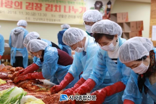 Àü³²´ëÇб³ ±³Á÷¿ø ºÀ»çµ¿¾Æ¸®ÀÎ ÇѰÉÀ½ºÀ»çȸ(ȸÀå ¿À¸í±Ù)´Â 11¿ù 30ÀÏ(±Ý) ¿ÀÈÄ ±³³» Ç޵鸶·ç ½Ä´ç¿¡¼ ¡®2018 »ç¶ûÀÇ ±èÀå±èÄ¡ ³ª´©±â¡¯ ºÀ»çȰµ¿À» ÆîÃÆ´Ù.