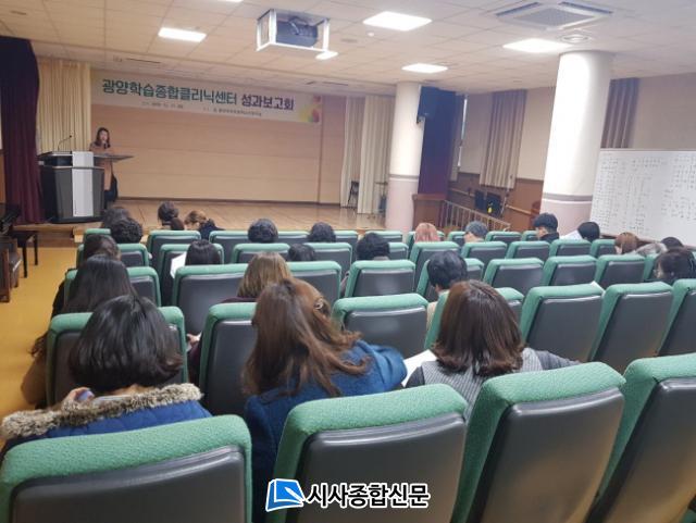 À̹ø ¼º°úº¸°íȸ´Â °¢ Çб³¿¡ Áö¿øÇÑ ¼ÒÁßÇÑ ¾ÆÀ̵鿡 ´ëÇÑ »ç·Ê¹ßÇ¥¿Í ±âÃÊÇз ´ã´ç ¼±»ý´ÔµéÀÇ ÀǰßÀ» ¼ö·ÅÇÏ´Â ½Ã°£À¸·Î ÁøÇàµÇ¾ú´Ù. ¿ÃÇØ ±¤¾çÇнÀÁ¾ÇÕŬ¸®´Ð¼¾ÅÍ´Â ±âÃÊÇнÀºÎÁøÇлýÀÇ ±âÃÊÇзÂÇâ»óÀ» À§ÇØ ÃÊ 11±³, Áß 2±³ÀÇ 40¸íÀ» Áö¿øÇÏ¿´°í, ¶ÇÇÑ ½ÉÃþÁö¿øÀÌ ÇÊ¿äÇÑ ÇлýµéÀ» À§ÇÑ S.O.S À§±âÇлýÁ¾ÇÕÁö¿ø½Ã½ºÅÛÀ» ÅëÇØ ÃÊ 9±³, Áß 3±³, À¯ 1±³ 34¸íÀ» Áö¿øÇÏ¿´´Ù.