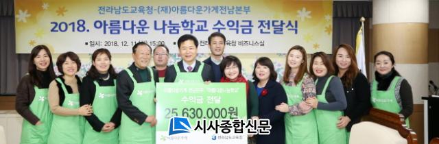 ¾Æ¸§´Ù¿î°¡°ÔÀü³²º»ºÎ´Â À̳¯ ³ª´®Çб³¸¦ ¿î¿µÇØ ¿Ã¸° ¼öÀÍ±Ý 2,500¸¸¿øÀ» Àå¼®¿õ ±³À°°¨¿¡°Ô Àü´ÞÇß´Ù.