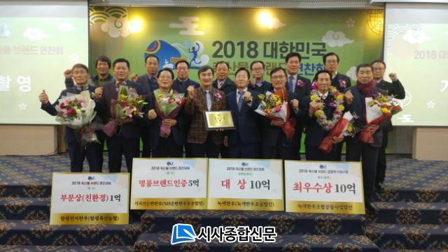 ¶ÇÇÑ ¡®³ì»öÇѿ졯°¡ Áö³ÇØ¿¡ À̾î 2³â ¿¬¼Ó ÃÖ°í»óÀÎ ´ëÅë·É»ó¿¡ ¼±Á¤µÇ°í ¡®ÇÔÆòõÁöÇѿ졯°¡ ³óÇùÁß¾ÓȸÀå»óÀ» ¹Þ¾Ò´Ù. ´ëÇѹα¹ Ãà»ê¹° ºê·£µå °æÁø´ëȸ´Â Ãà»ê¹° »ý»ê¿¡¼ µµÃࡤ°¡°ø¡¤À¯Å롤ÆÇ¸Å±îÁö ¸ðµç ´Ü°è¿¡ °ÉÃÄ ºê·£µå °ü¸®°¡ ¿ì¼öÇÑ °æ¿µÃ¼¸¦ ¹ß±¼ÇÏ°í ¿ì¼ö Ãà»ê¹° ºê·£µå¿¡ ´ëÇÑ ¼ÒºñÀÚ ½Å·Úµµ È®º¸¸¦ À§ÇØ ³ó¸²Ãà»ê½ÄǰºÎ ÁÖÃÖ·Î ¸Å³â ½Ç½ÃµÈ´Ù.