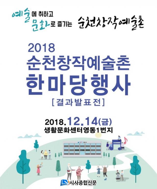 ¼øÃµ ¿øµµ½É µµ½ÃÀç»ý ¼±µµ»ç¾÷ ÀÏȯÀ¸·Î Á¶¼ºµÈ âÀÛ¿¹¼úÃÌ¿¡¼ ¿Ã ÇÑ ÇØ ¼º°ú¸¦ Á¾ÇÕÇÏ°í »õ·Î¿î µµ¾àÀ» ±â¿øÇÏ´Â ¡®2018 ¼øÃµ âÀÛ¿¹¼úÃÌ ÇѸ¶´çÇà»ç¡¯¸¦ 12¿ù 14ÀÏ(±Ý) ¿ÀÈÄ 2½Ã, »ýȰ¹®È¼¾ÅÍ ¿µµ¿1¹øÁöµî âÀÛ¿¹¼úÃÌ ÀÏ¿ø¿¡¼ °³ÃÖÇÑ´Ù.