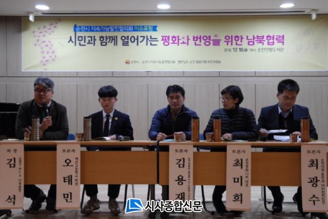 ¹Ú¼®ºÐ ÆÀÀå(ÆòÈ¿Í ÅëÀÏÀ» ¿©´Â »ç¶÷µé)ÀÌ ¡°³²ºÏ, ºÏ¹Ì Á¤»óȸ´ãÀÌ °¡Á®¿Ã º¯È¿Í ÆòȽô븦 ¿±â À§ÇÑ °úÁ¦´Â ¹«¾ùÀΰ¡¡±¶ó´Â ÁÖÁ¦ÀÇ ±âÁ¶¹ß¾ðÀ» ½ÃÀÛÀ¸·Î ½ÀÁö·Î Çϳª µÇ´Â ³²ºÏ»ýű³·ùÇù·Â(Ȳ¼±¹Ì ¼øÃµ½Ã ¼øÃµ¸¸º¸Àü°ú), ³ó¹ÎÂ÷¿øÀÇ ³ó±â°è ±³·ù»ç¾÷(À±À챂 ¼øÃµÅëÀÏÆ®·¢ÅÍ Ç°¾ÑÀ̿º»ºÎ), ¼øÃµ¿¡¼ ¹Î°£ÅëÀϿ »ç·Ê(Àӽ°ü ¼øÃµÃ»³â¿¬´ë), Çб³·Î °¡´Â ÅëÀϱ³À°(¿À¿ë¿î ã¾Æ°¡´Â ÆòÈÅëÀÏ °»ç´Ü) µî ¼øÃµÁö¿ª¿¡¼ ÁøÇàµÇ¾î¿Â ¡®ÀαÇ.Á¤ÀÇ.ÆòÈ¡¯ÀÇ »ç·Ê¸¦ °øÀ¯Çϰí, û¼Ò³â°ú ½Ã¹Î´Üü, ÇàÁ¤ÀÌ ÆÐ³Î·Î Âü¿©ÇÏ¿© ³²ºÏÇù·Â°ú ±³·ù¿¡ ´ëÇÑ ¿¶í Åä·ÐÀÌ À̾îÁ³´Ù.