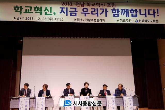 ÇÑÆí, ¼Û¿ë¼® ±³À°±¹ÀåÀº ¡°½ºÄ¡¸é Àο¬ÀÌ°í ½º¸çµé¸é »ç¶ûÀ̶ó´Â ¸»ÀÌ ÀÖµí, Çõ½ÅÀÌ Àü³²±³À° ÇöÀå¿¡ ÀÚ¿¬½º·´°Ô ½º¸çµé¸é ÁÁ°Ú´Ù.¡±¸é¼ ¡°¿À´Ã Æ÷·³¿¡¼ ÀÇ¹Ì ÀÖ´Â ³íÀǰ¡ ÀÌ·ïÁ® Çб³Çõ½ÅÀÇ Àü¸éȸ¦ ÀÌ·ç´Â µ¥ ±âÆøÁ¦°¡ µÇ±â¸¦ ¹Ù¶õ´Ù.¡±°í ¸»Çß´Ù.