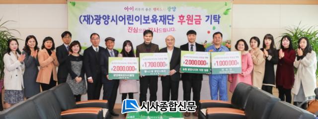 À̹ø¿¡ ±âŹµÈ ±â±ÝÀº ³óÇù±¤¾ç½ÃÁöºÎ(ÁöºÎÀå ±èȸõ) 200¸¸ ¿ø, Áö³ 1¿ù¿¡ ÀÌ¾î µÎ ¹øÂ°·Î ±âŹÇÑ À£´Ï½ºÆÊ ±¤¾ç½ºÅ丮(ȸÀå ÀÓ¿Áõ) 170¸¸ ¿ø, Áö¿ª ºÀ»ç´ÜüÀÎ ±¤¾ç¸ÅȷΟ¸®Å¬·´(ȸÀå ¹ÚÁ¤¼÷) 200¸¸ ¿ø, â´ö¿¡¹öºô2Â÷¾ÆÆÄÆ® ÀÔÁÖÀÚ À̼ö¾ð ¾¾ 100¸¸ ¿ø µî ÃÑ 670¸¸ ¿øÀÌ´Ù.