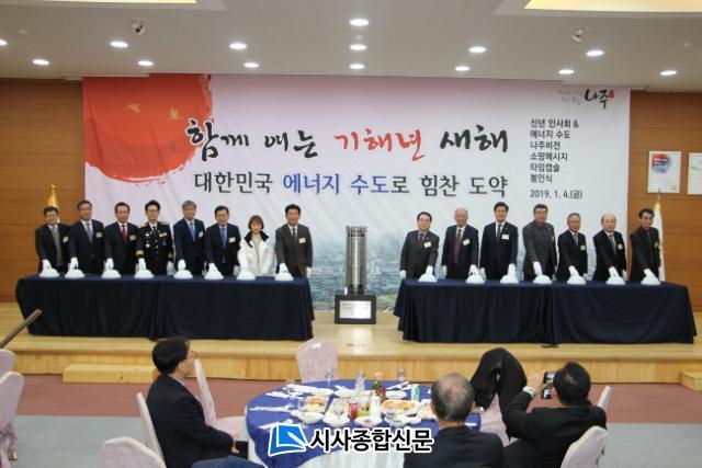 ° ½ÃÀåÀº ¼Ò¸Á¸Þ½ÃÁö ³¶µ¶À» ÅëÇØ, ¡°¿À´Â 2025³â¿¡´Â ³ªÁÖ°¡ ¸í½Ç°øÀÌ ´ëÇѹα¹ ¿¡³ÊÁö»ê¾÷ °ÅÁ¡µµ½Ã·Î ¿ì¶Ò ¼ È£³²ÀÇ Áß½ÉÀ» ³Ñ¾î ±Û·Î¹ú ¿¡³ÊÁö»ê¾÷ ¸ÞÄ«·Î ºñ»óÇϱæ 11¸¸ ½Ã¹Î°ú ÇÔ²² ¼Ò¸ÁÇÑ´Ù.¡±°í Çß´Ù.