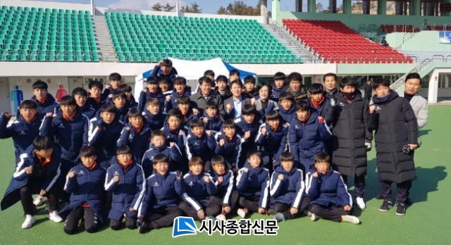 °íÈï µ¿°èÀüÁöÈÆ·Ã¿¡ Âü¿©Çϰí ÀÖ´Â À¯¼Ò³â Ã౸ ¼±¼öµéÀ» ¸¸³ Â÷¹ü±Ù Àü °¨µ¶Àº ¡°°Ç°ÇÏ°Ô ÈÆ·Ã¿¡¸¸ Àü³äÇÏ¿©, ´ëÇѹα¹À» ´ëÇ¥ÇÏ´Â Ã౸ ¼±¼ö·Î ¿ì¶Ò ¼ºÀåÇØ Áֱ⸦ ¹Ù¶õ´Ù¡±°í Èñ¸ÁÀÇ ¸Þ½ÃÁö¸¦ ÀüÇß´Ù.