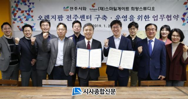 ÀüÁÖ½Ã¿Í (Àç)½º¸¶ÀϰÔÀÌÆ® Èñ¸Á½ºÆ©µð¿À(ÀÌ»çÀå ±ÇÇõºó)´Â 22ÀÏ ÀüÁÖ½ÃÀå½Ç¿¡¼ ±è½Â¼ö ÀüÁÖ½ÃÀå°ú ¾çµ¿±â ½º¸¶ÀϰÔÀÌÆ® ½ºÅäºê ´ëÇ¥, ¼»óºÀ (Àç)½º¸¶ÀϰÔÀÌÆ® Èñ¸Á½ºÆ©µð¿À ÀÌ»ç µî ¾ç ±â°ü °ü°èÀÚµéÀÌ Âü¼®ÇÑ °¡¿îµ¥ ¡®¿À·»ÁöÆÊ ÀüÁÖ¼¾ÅÍ¡¯ ±¸Ãࡤ¿î¿µ ¹× û³ââ¾÷°¡ À°¼ºÀ» À§ÇÑ ¾÷¹« Çù·ÂÀ» ü°áÇß´Ù.