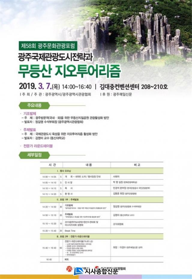 ±¤ÁÖ±¤¿ª½Ã ÁÖÃÖ, (»ç)±¤ÁÖ±¤¿ª½Ã°ü±¤Çùȸ ÁÖ°üÀ¸·Î ¸¶·ÃµÈ À̹ø Æ÷·³¿¡¼´Â 2019±¤ÁÖ¼¼°è¼ö¿µ¼±¼ö±Ç´ëȸ¸¦ ¾ÕµÎ°í °ü±¤È°¼ºÈ ¹æ¾ÈÀ» ¸ð»öÇÑ´Ù. ƯÈ÷ °ü±¤ºÐ¾ß Àü¹®°¡, À¯°ü±â°ü, Çаè, ¿©Çà»ç °ü°èÀÚ µîÀÌ Âü¿©ÇØ ¡®±¤ÁÖ±¹Á¦°ü±¤µµ½Ã Àü·«°ú ¹«µî»ê Áö¿ÀÅõ¾î¸®Áò¡¯À» ÁÖÁ¦·Î ÀǰßÀ» ³ª´«´Ù.