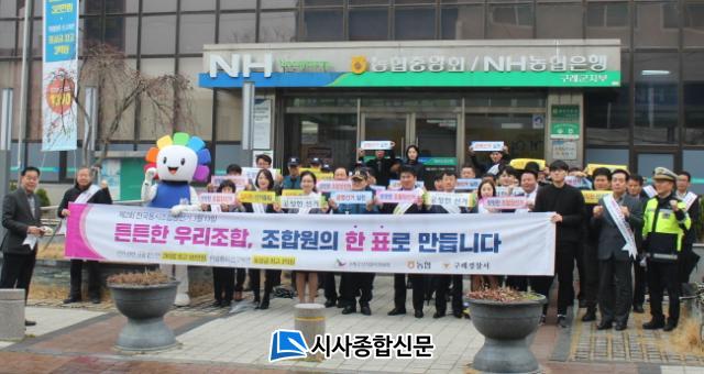 À̳¯ Ä·ÆäÀÎÀº ±¸·Ê±º¼±°üÀ§, ³óÇùÁß¾Óȸ±¸·Ê±ºÁöºÎ, ±¸·Ê°æÂû¼, ±¸·ÊÃàÇù µî ¼±°Å°ü°èÀÚ 40¿©¸íÀÌ Âü¿©ÇÏ¿´´Ù. ³óÇùÁß¾Óȸ±¸·Ê±ºÁöºÎ¿¡¼ ±¸·Ê°æÂû¼ ¾Õ ·ÎÅ͸®±îÁö °¡µÎÇàÁøÀ» Çϸç Ãâ±Ù±æ ÁÖ¹Îµé ´ë»óÀ¸·Î ÅõÇ¥Âü¿© ¹× µ·¼±°Å ±ÙÀýÀ» À§ÇÑ Çö¼ö¸·¡¤¼ÕÇÁ¶û °Ô½Ã, ¸®Çø´¡¤È«º¸¹°Ç° ¹èºÎ µîÀÌ ÀÌ·ç¾îÁ³´Ù.