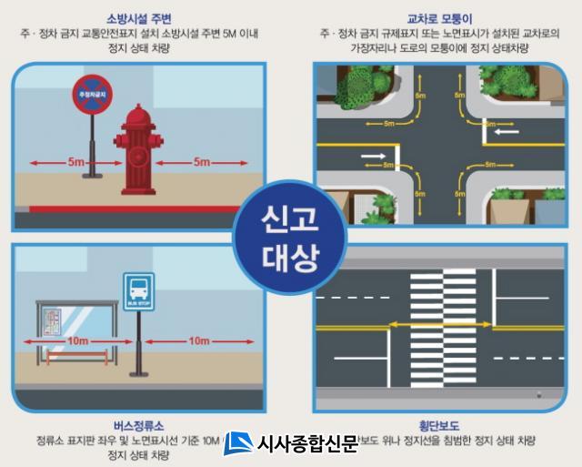 ½Å°í´ë»óÀº ¨ç ¼ÒÈÀü ÁÖº¯ 5m À̳», ¨è ±³Â÷·Î ¸ðÅüÀÌ 5m À̳», ¨é ¹ö½ºÁ¤·ù¼Ò Ç¥ÁöÆÇ ¹× ³ë¸éÇ¥½Ã¼± ±âÁØ 10m À̳», ¨ê Ⱦ´Üº¸µµ À§ ¹× Á¤Áö¼±À» ħ¹üÇØ ÁÖ¡¤Á¤Â÷µÈ 4´ë ºÒ¹ý ÁÖÁ¤Â÷·®ÀÌ´Ù.