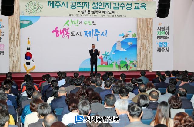 [Á¦ÁÖ½Ã/½Ã»çÁ¾ÇսŹ®]°í¼º¹Î ±âÀÚ = Á¦Áֽô Áö³ 18ÀÏ ¼Ò¼ÓÁ÷¿ø 300¿©¸íÀÌ Âü¿©ÇÑ °¡¿îµ¥ ¡°Á¦Áֽà °øÁ÷ÀÚ ¼ºÀÎÁö °¨¼ö¼º ±³À°¡±À» ½Ç½ÃÇÏ¿´´Ù.