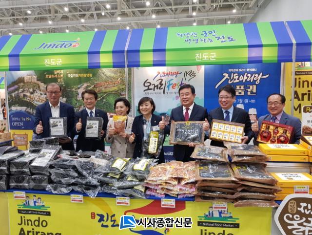 ÃÖ±Ù °æ±âµµ ¼ö¿øÄÁº¥¼Ç¼¾ÅÍ¿¡¼ ¿¸° ¡®´ëÇѹα¹ ±âº»¼Òµæ ¹Ú¶÷ȸ¡¯¿¡¼ Áøµµ±ºÀº 4¸éÀÌ ¹Ù´Ù·Î µÑ·¯½ÎÀÎ °÷ÀÎ ¸¸Å ÇØ»ê¹° È«º¸¸¦ Àü¸é¿¡ ³»¼¼¿ü´Ù. ƯÈ÷ ¹Ì¿ª, ±è, °Ç»õ¿ì µî Ư»êǰÀ» Àú·ÅÇÑ °¡°Ý¿¡ ¼±º¸¿© ¹æ¹®°´µéÀÇ ¹ß±æÀ» »ç·Î Àâ¾Ò´Ù. Áøµµ±ºÀÇ µ¶Æ¯ÇÑ Æ¯»ê¹°ÀÎ ¿ï±Ý, È«ÁÖ µîÀ» ¼±º¸¿© ¡®È£Æò¡¯À» ¹Þ¾Ò´Ù.