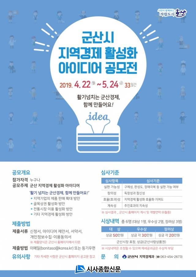 À̹ø °ø¸ðÀüÀº ±º»ê»ç¶û ½Ã¹Î¿îµ¿ÀÇ ÀÏȯÀ¸·Î °æÁ¦ Ȱ·Â Á¦°í Á¤Ã¥ ¾ÆÀ̵ð¾î¹ß±¼·Î ½ÃÁ¤¿¡ Àû±Ø ¹Ý¿µÇϰí, Áö¿ª»ç¶û ½Çõ °ø°¨´ë¸¦ È®»êÇϰíÀÚ ¸¶·ÃµÆ´Ù. °ø¸ðºÐ¾ß´Â ¡®Áö¿ª°æÁ¦ Ȱ¼ºÈ ¾ÆÀ̵ð¾î¡¯¿Í ¡®±º»ê»ç¶û UCC µ¿¿µ»ó¡¯ 2°³ ºÐ¾ß·Î, Áö¿ª°æÁ¦ Ȱ¼ºÈ¿Í ±º»ê»ç¶û ½Ã¹Î¿îµ¿°ú °ü·ÃµÈ ³»¿ëÀ» ´ãÀ¸¸é µÈ´Ù.