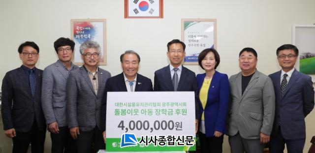 | ´ëÇѽü³¹°À¯Áö°ü¸®Çùȸ, ±¤ÁÖ±³À°Ã» µ¹º½ÀÌ¿ô û¼Ò³â ÀåÇÐ±Ý Áö¿ø 8ÀÏ ±¤Áֽñ³À°Ã» ±³À°°¨½Ç¼ Àü´Þ½Ä, 400¸¸¿ø °ü³» ÁßÇлý 8¸í¿¡ Áö¿ø ¿¹Á¤