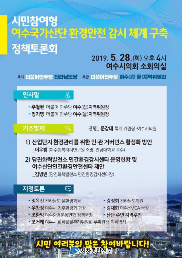 Áö¿ªÀ§¿øÈ¸¿¡ µû¸£¸é, ¿À´Â 28ÀÏ ¿ÀÈÄ 4½Ã ¿©¼ö½ÃÀÇȸ ¼ÒȸÀǽǿ¡¼ ´ë±âȯ°æ Àü¹®°¡¿Í ½ÃÀÇ¿ø ¹× ´ç¿ø ±×¸®°í ½Ã¹ÎµéÀÌ Âü¼®ÇÑ °¡¿îµ¥ ¡®½Ã¹ÎÂü¿©Çü ¿©¼ö±¹°¡»ê´Ü ȯ°æ¾ÈÀü °¨½Ã ü°è ±¸Ãà Á¤Ã¥Åä·Ðȸ¡¯¸¦ °³ÃÖÇÑ´Ù.