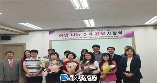 Àü¶ó³²µµ ±ÝÀ¶º¹Áö»ó´ã¼¾ÅÍ 3Áֳ⠱â³ä 2019³â Èñ¸Á ³ª´® ¼ö±â °ø¸ðÀüÀ» 2019³â 2¿ù01ÀϺÎÅÍ 2019³â 04¿ù 30ÀϱîÁö ÁøÇàÇß´Ù. À̹ø °ø¸ðÀü¿¡ Á¢¼öµÈ ÀÛǰµéÀº Àü¹® ½É»çÀ§¿øÀÇ ½É»ç¸¦ °ÅÃÄ ´ë»ó1¸í, ÃÖ¿ì¼ö»ó 2¸í, ¿ì¼ö»ó4¸í¿¡°Ô ¼ö¿©µÇ¸ç ¼ö»óÀÛ ¹× ¿ì¼ö Âü°¡ÀÛÀº¡°¼¼»óÀ» ¹àÈ÷´Â µû¶æÇÑ ºû Àü¶ó³²µµ ±ÝÀ¶º¹Áö»ó´ã¼¾ÅÍ 2019»ó´ã»ç·ÊÁý¡±À¸·Î ¹ß°£µÉ ¿¹Á¤ÀÌ´Ù.