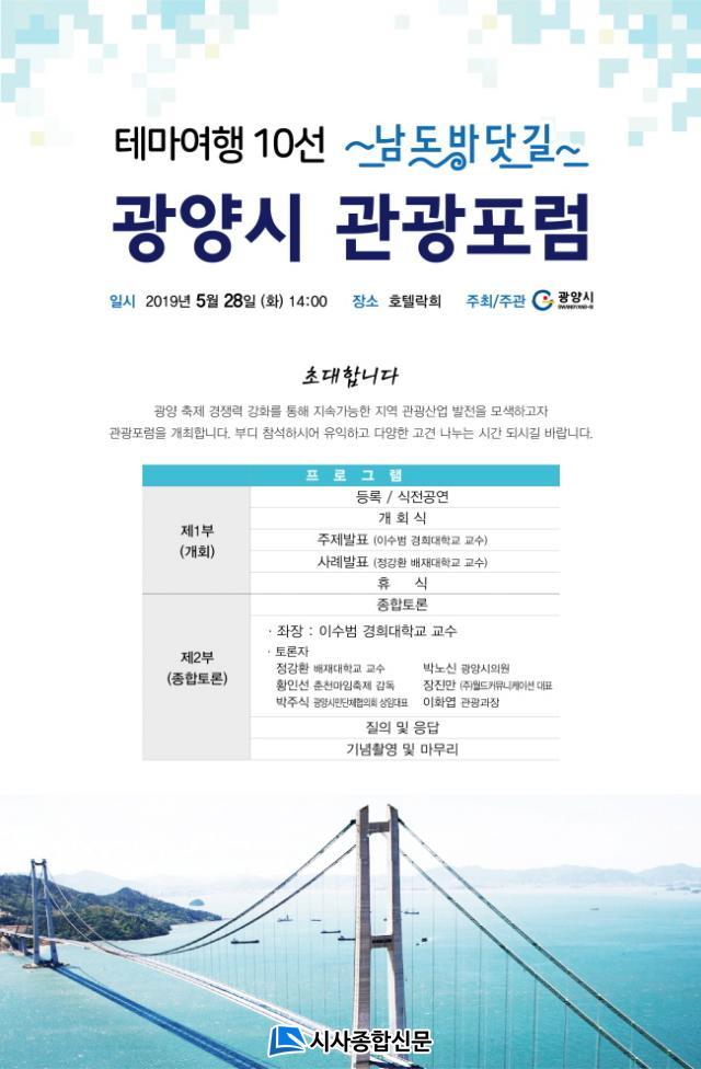 ±¤¾ç½Ã¿¡ µû¸£¸é 28ÀÏ ¿ÀÈÄ 2½Ã, È£ÅÚ ¶ôÈñ ¿¬È¸Àå¿¡¼ ¡®±¤¾ç½Ã ÃàÁ¦ °æÀï·Â °È ¹æ¾È¡¯À̶ó´Â ÁÖÁ¦¸¦ ³õ°í ¡®2019 Å׸¶10¼± 6±Ç¿ª Æ÷·³-±¤¾ç½Ã Áö¿ª °ü±¤Æ÷·³¡¯À» °³ÃÖÇÑ´Ù°í ¹àÇû´Ù.