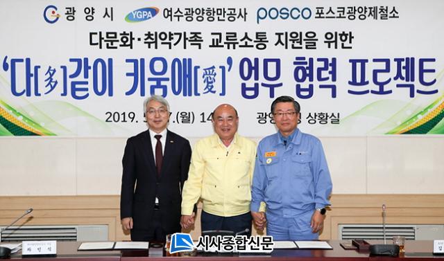 À̳¯ Çù¾à½ÄÀº Á¤Çöº¹ ±¤¾ç½ÃÀå, Â÷¹Î½Ä ¿©¼ö±¤¾çÇ׸¸°ø»ç »çÀå, ±èÁ¤¼ö Æ÷½ºÄÚ ±¤¾çÁ¦Ã¶¼Ò ÇàÁ¤ºÎ¼ÒÀå°ú ÀÓÁ÷¿øµéÀÌ Âü¼®ÇÑ °¡¿îµ¥ ÁøÇàµÆ´Ù.