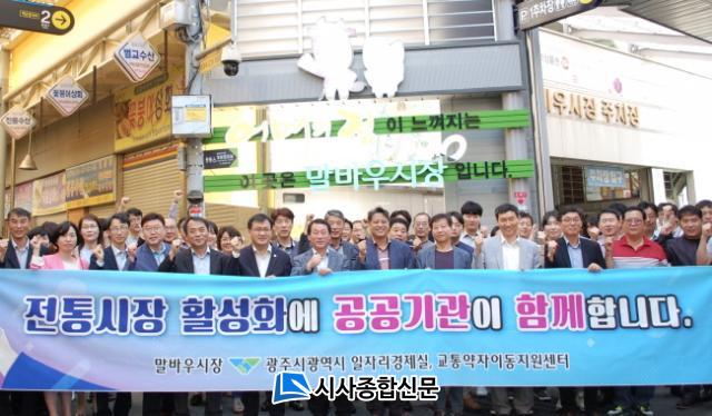 À̳¯ Çà»ç¿¡´Â ½Ã ÀÏÀÚ¸®°æÁ¦½Ç°ú ±³Åë¾àÀÚÀ̵¿Áö¿ø¼¾ÅÍ Á÷¿ø 70¿© ¸íÀÌ Âü¿©ÇØ ¸»¹Ù¿ì½ÃÀå À¯·¡, ½ÃÀå¿¡ ´ëÇÑ ¾È³», À庸±â Çà»ç, ½ÃÀå ³» ½Ä´ç ÀÌ¿ëÇÏ±â µî ´Ù¾çÇÑ Çà»ç¸¦ ÁøÇàÇß´Ù. ÇöÀç ±¤ÁÖ½Ã¿Í °ø°ø±â°üÀº ÀڸŰῬ ½ÃÀå°ú °ø°ø±â°üÀÇ Àü¹®¼ºÀ» Á¢¸ñÇÑ ´Ù¾çÇÑ »ç¾÷°ú ºÐ±âº° ÀüÅë½ÃÀå ¹æ¹® Çà»ç¸¦ ÃßÁøÇϰí ÀÖ´Ù.