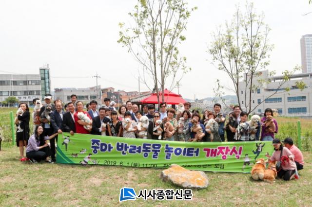 Á߸¶µ¿ ±¹¹Î°Ç°º¸Çè°ø´Ü µÚÆí¿¡ Á¶¼ºµÈ ¹Ý·Áµ¿¹° ³îÀÌÅÍ¿¡¼ ¿¸° À̳¯ °³°½Ä¿¡´Â Á¤Çöº¹ ±¤¾ç½ÃÀåÀ» ºñ·ÔÇØ ½ÃÀÇ¿ø, ±¤¾ç½Ã ¾Ö°ß»ç¶û¹êµå ȸ¿ø µî 50¿© ¸íÀÌ Âü¼®Çß´Ù.