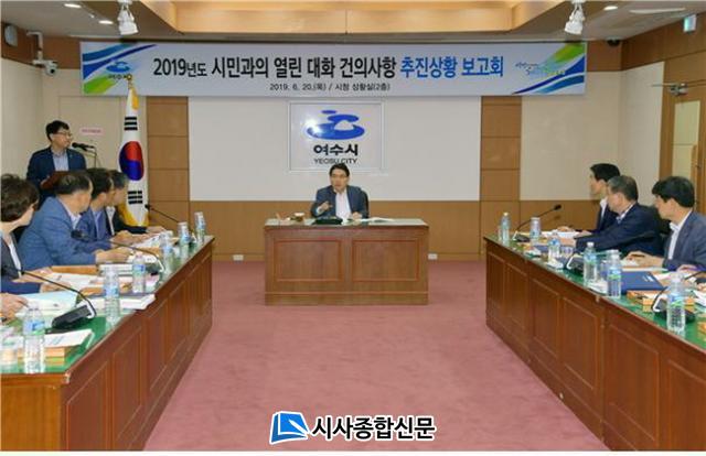 ¿©¼ö½Ã´Â 20ÀÏ ½Ãû »óȲ½Ç¿¡¼ ¿©¼ö½ÃÀå°ú ºÎ½ÃÀå, °£ºÎ °ø¹«¿ø µî 20¿© ¸íÀÌ Âü¼®ÇÑ °¡¿îµ¥, ¡®½Ã¹Î°úÀÇ ¿¸° ´ëÈ °ÇÀÇ»çÇ× º¸°íȸ¡¯¸¦ ¿¾ú´Ù°í ¹àÇû´Ù. º¸°íȸ¿¡¼ °¢ ±¹.¼Ò.´ÜÀåÀº °ÇÀÇ»çÇ× ÃßÁø»óȲ°ú ÇâÈİèȹÀ» ¼³¸íÇß´Ù. Âü¼®ÀÚµéÀº ºÎ¼º° ÇùÁ¶ »çÇ×°ú ¿¹»êÈ®º¸ ¹æ¾È µîÀ» ³íÀÇÇß´Ù.