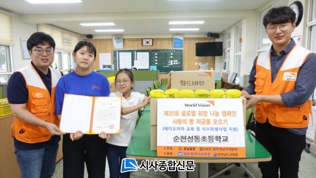 ¼øÃµ¼ºµ¿ÃÊ´Â ¿¡Æ¼¿ÀÇǾÆ, Àáºñ¾Æ Ä£±¸µéÀÌ Èñ¸ÁÀ» µÇãÀ» ¼ö ÀÖµµ·Ï ¿ùµåºñÀü »ç¶ûÀÇ »§ ¸ð±ÝȰµ¿¿¡ Âü¿©ÇÏ¿´´Ù. Àü±³Çлýȸ ÁÖµµ·Î ÀÌ·ç¾îÁø ¸ð±ÝȰµ¿Àº ÇлýȸÀÇ ¸ð±Ý È«º¸ ¹× ¾È³»¸¦ ÅëÇØ ÇлýµéÀÌ ´Ù¸¥³ª¶ó Ä£±¸µéÀÇ ¾î·Á¿î »óȲ¿¡ °ø°¨Çϰí ÀÛÀº ³ª´®À» °á½ÉÇÒ ÀÖ´Â °è±â°¡ µÇ¾ú´Ù. ¶ÇÇÑ Çлýµé¿¡°Ô Áö±¸ÃÌÀÇ ¾î·Á¿î ÀÌ¿ô¿¡ ´ëÇÑ µ½±â¸¦ ½ÇõÇÏ¿© ±¹Á¦ÀûÀÎ ³ª´®ÀÇ Á¤½Å°ú ½Ã¾ß¸¦ ³ÐÈ÷´Â ±âȸ¸¦ Á¦°øÇÏ¿´´Ù.