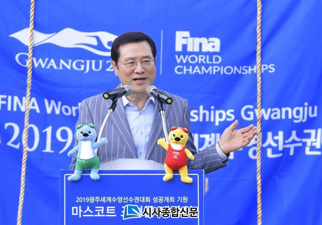 ±¤ÁÖ±¤¿ª½Ã¿Í ±¤ÁÖ¼¼°è¼ö¿µ¼±¼ö±Ç´ëȸ Á¶Á÷À§¿øÈ¸(ÀÌÇÏ ¡®Á¶Á÷À§¡¯)´Â 24ÀÏ ¿ÀÈÄ ´ëÀü½Ãû ¾Õ Àܵð±¤Àå¿¡¼ ´ëȸ Á¶Á÷À§¿øÀåÀÎ À̿뼷 ±¤ÁÖ½ÃÀå, ÇãÅÂÁ¤ ´ëÀü½ÃÀå, ±¤ÁÖ½ÃÀÇȸ Àӹ̶õ ºÎÀÇÀå°ú ±èÀÍÁÖ ÇàÀÚÀ§¿øÀå, Á¶¼®È£ ¼ö¿µ´ëȸÁö¿øÆ¯À§ À§¿ø, ´ëÀü½ÃÀÇȸ ±èÁ¾Ãµ ÀÇÀå°ú ¹ÚÇý·Ã ÇàÀÚÀ§¿øÀå µî 100¿©¸íÀÌ Âü¼®ÇÑ °¡¿îµ¥ ¸¶½ºÄÚÆ® ¼ö¸®´ÞÀÌ Á¶Çü¹° Á¦¸·½ÄÀ» °¡Á³´Ù.