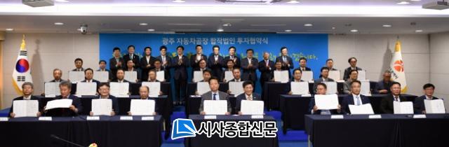 ¶ÇÇÑ, Á¦ 1´ë‧2´ë ÅõÀÚÀÚÀÎ ±¤Áֱ׸°Ä«ÁøÈï¿ø ¹èÁ¤Âù ¿øÀå, Çö´ëÀÚµ¿Â÷ °ø¿µ¿î »çÀåÀ» ºñ·ÔÇØ ÇÕÀÛ¹ýÀο¡ ÅõÀÚÇÒ Áö¿ª±â¾÷, ÀÚµ¿Â÷ ºÎǰ»ç, ±ÝÀ¶±Ç µîÀÇ ´ëÇ¥ 32¸íÀÌ Âü¼®ÇØ ÅõÀÚ Çù¾à¼¿¡ ¼¸íÇß´Ù. ÀÌ °¡¿îµ¥´Â Áö¿ª ±â¾÷µéÀ» ´ëÇ¥ÇÏ´Â ±¤ÁÖ»ó°øÈ¸ÀǼÒ, Áö¿ª °Ç¼³¾÷üÀΠȣ¹Ý, ÁßÈï, ¸ð¾Æ, ÀÚµ¿Â÷ ºÎǰ»çÀΠȣ¿ø, Áö±Ý° µîÀÌ Æ÷ÇÔµÆÀ¸¸ç ±¤ÁÖÀºÇà, »ê¾÷ÀºÇà, ³óÇù µî ±ÝÀ¶±Çµµ ÇÔ²² Çß´Ù.