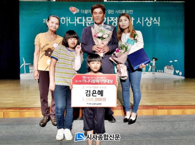 Çູµµ¿ò»óÀ» ¼ö»óÇÑ ±èÀºÇý¾¾´Â 2005³âµµ¿¡ Çѱ¹ÀÎ ³²¼º°ú °áÈ¥ÇÑ ÈÄ Ä¡¸Å¿¡ °É¸° ½Ã¾î¸Ó´Ï¿Í °Ç°ÀÌ ÁÁÁö ¾ÊÀº ½Ã¾Æ¹öÁö¸¦ ¸ð½Ã´Â µîÀÇ ¾î·Á¿òÀÌ ÀÖÀ½¿¡µµ ÃʱâÀÔ±¹ÇÑ °áÈ¥ÀÌÁֹΠ¿©¼ºµéÀÌ Á¶±â¿¡ Á¤ÂøÇÒ ¼ö ÀÖµµ·Ï Áö¿øÇÏ´Â µî Àû±ØÀûÀÎ µµ¿ò Ȱµ¿À» ÆîÃÄ ±× °øÀ» ÀÎÁ¤¹Þ¾Ò´Ù.