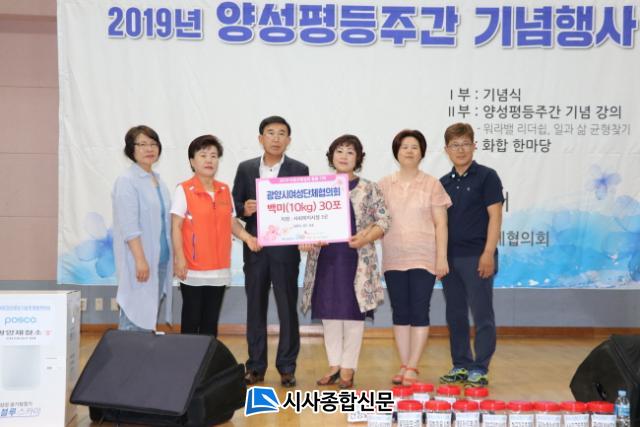 [½Ã»çÁ¾ÇսŹ® = Àå¹Î±Ô ±âÀÚ] ±¤¾ç½Ã¿©¼º´ÜüÇùÀÇȸ¿¡¼´Â Áö³ 2019³â 7¿ù 4ÀÏ (¼ö) 14:00 ±¤¾ç±¹¹ÎüÀ°¼¾ÅÍ¿¡¼ ÀÌ¿ô»ç¶û ½ÇõÀ¸·Î (Àç)±¤¾ç½Ã»ç¶û³ª´®º¹ÁöÀç´Ü(ÀÌ»çÀå ¼°æ¼®)¿¡ ¹é¹Ì(10kg) 30Æ÷¸¦ Àü´ÞÇß´Ù.